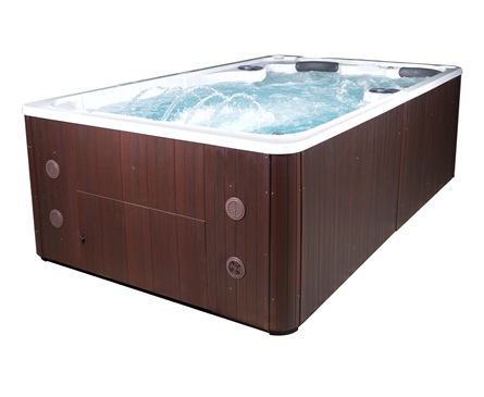 VELIČINA ŠKOLJKE: 381 cm x 236.2 cm VISINA: 123,83cm +/- tolerancija od 0,5 cm ZAPREMNINA: 5635 litara TEŽINA PUNOG: 6535 kg TEŽINA PRAZNOG: 900 kg KATEGORIJA: Swim SPA - protustrujno plivanje Mjesta za sjedenje: 2-3 osobe